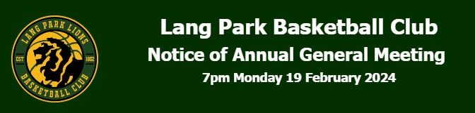 The Lang Park Basketball Club Inc Annual General Meeting will be held 7pm Monday 19 February 2024 at Lang Park PCYC in the Level 6 Boardroom.